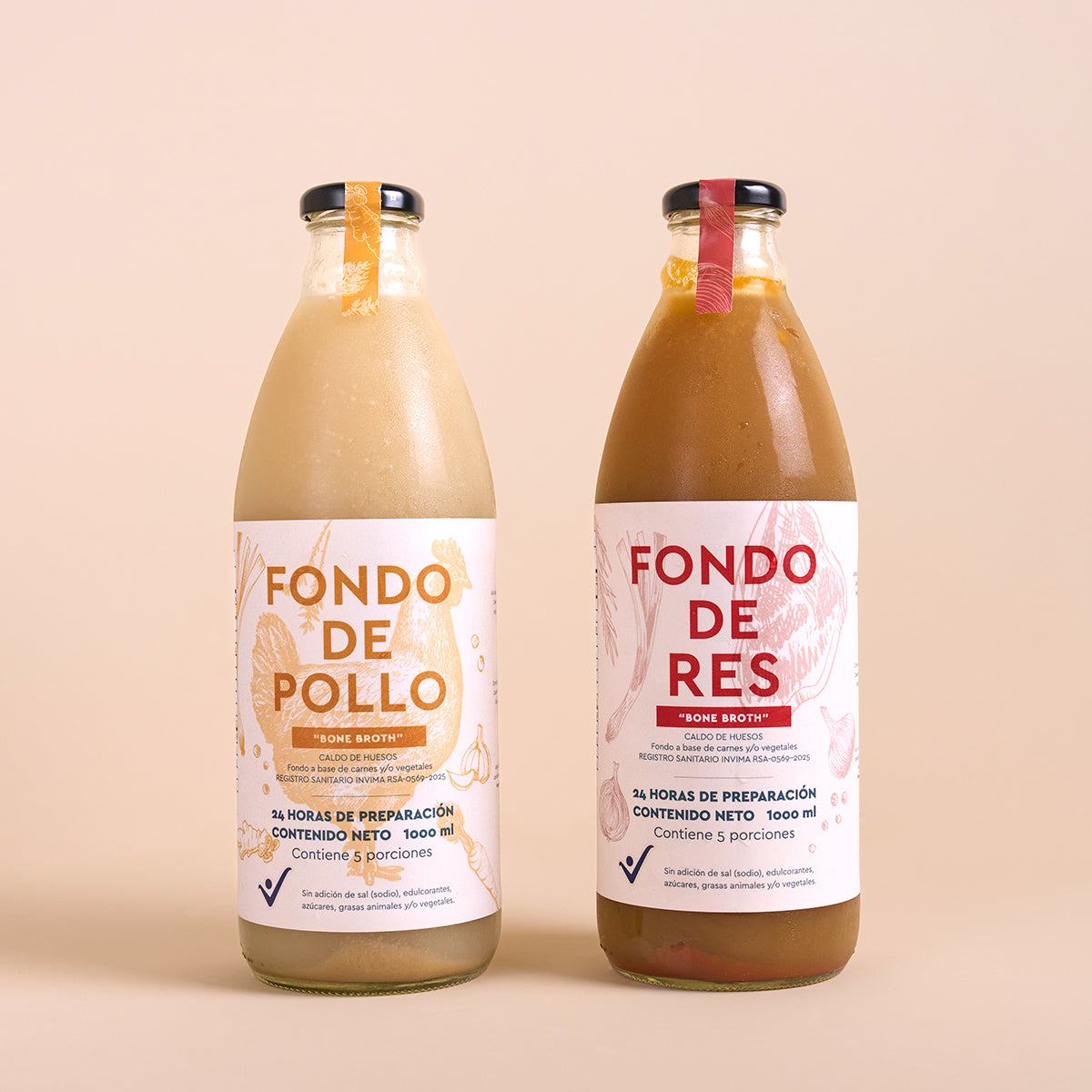 El caldo de hueso de res apoya la salud articular, muscular y digestiva, mientras que el caldo de hueso de pollo favorece la salud intestinal y el bienestar diario. Juntos, forman una base funcional para una cocina más consciente y nutritiva.